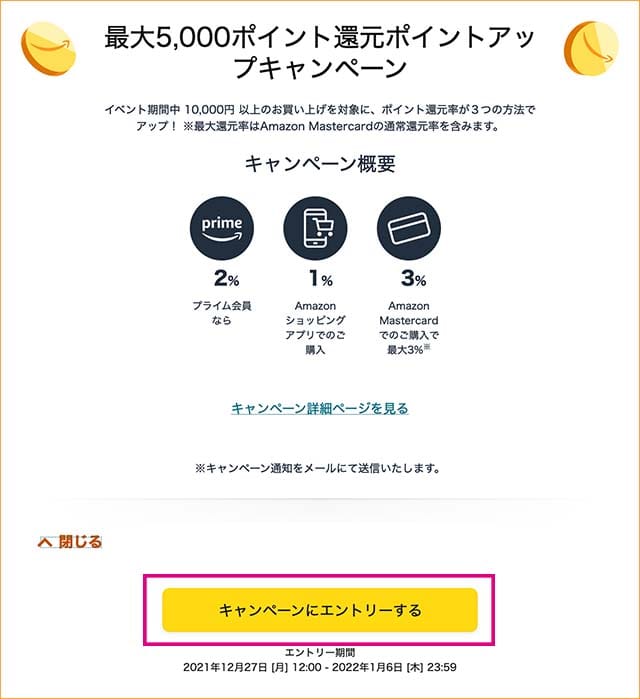 最大5,000ポイント還元キャンペーンにエントリーする