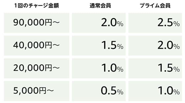 まとまった金額を事前にチャージする必要がありますが、最大で2.5%のポイントが貰えるので、ある程度大きい金額の買い物を予定している方にはメリットが大きい方法です。