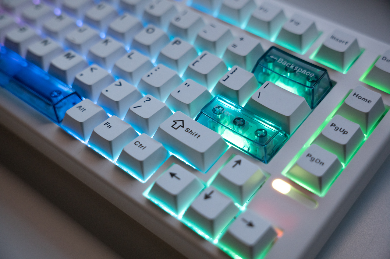 あまり派手に光らせたくないという方に適していますが、逆にもっと光らせたいという場合はキー印字部分が透過する「シャインスルーキーキャップ」などを別途用意して付け替えても良さそう。