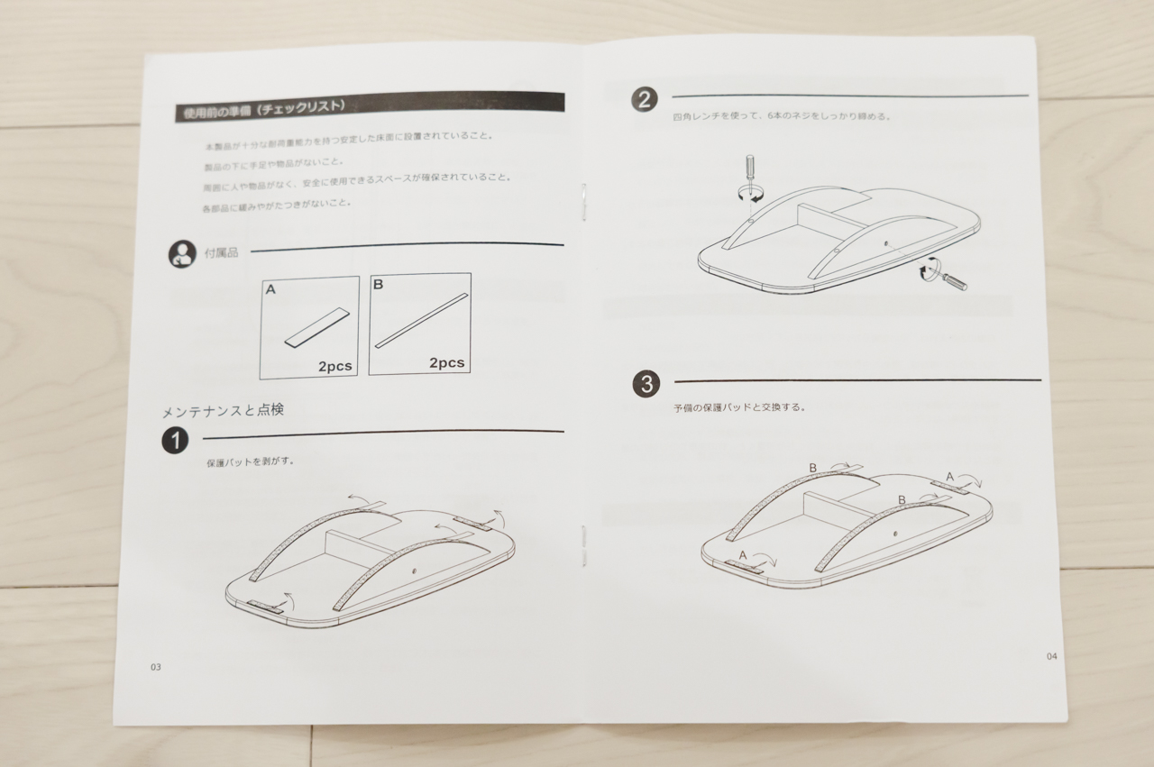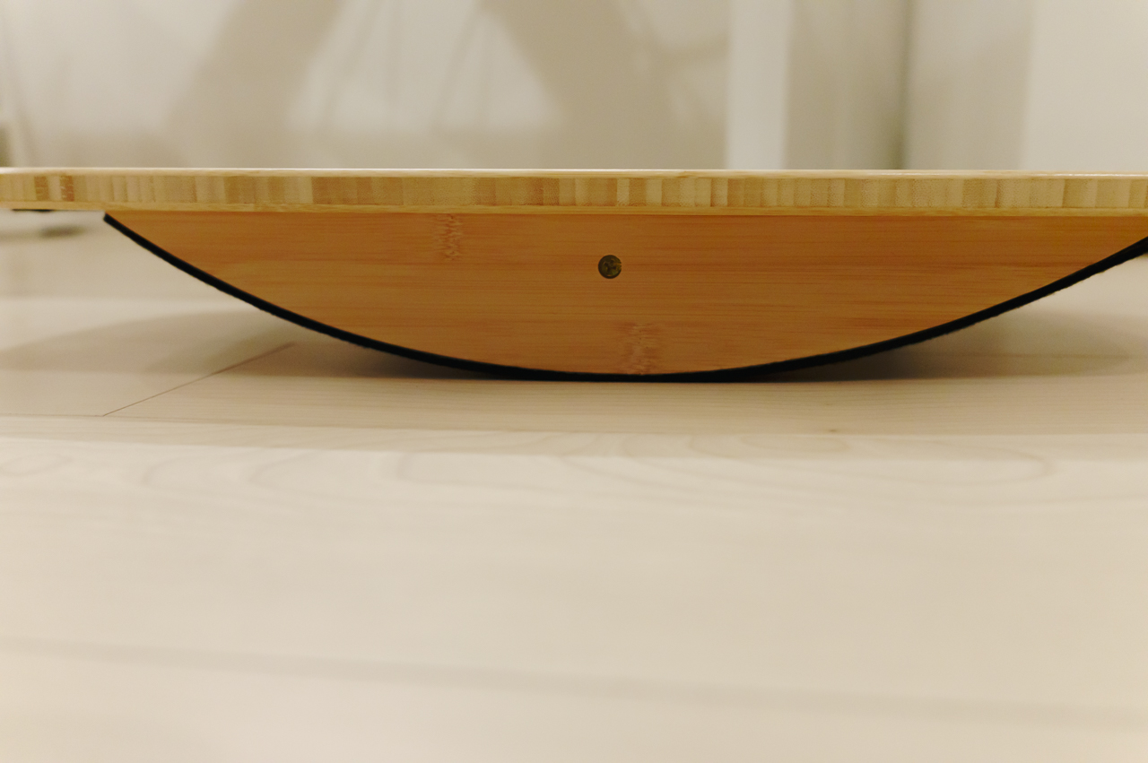 滑らかな表面の反面、かなり滑りやすい印象。靴下を履いたままこの上に乗るとツルツル滑るので、バランスボードとして使う際には素足の方が良さそうです。