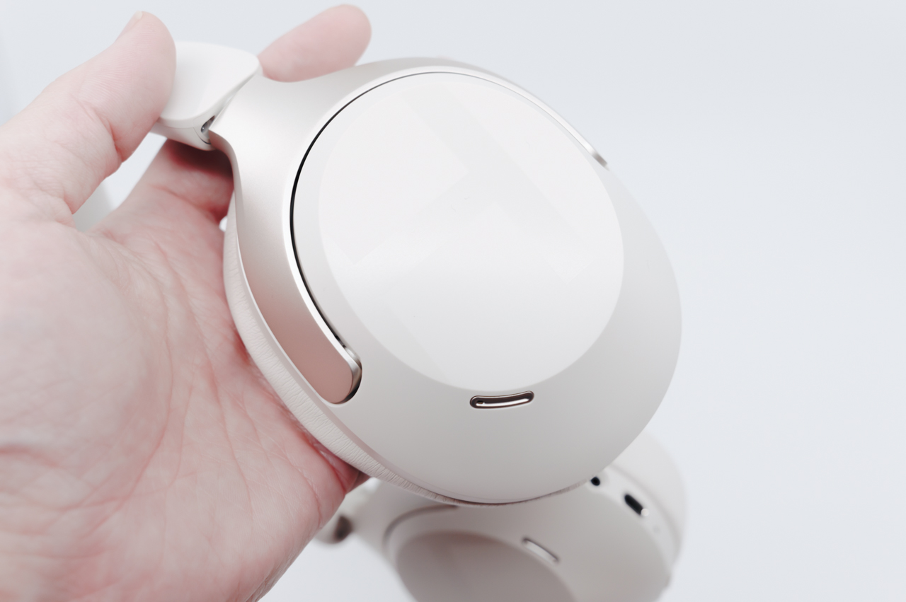 側圧はやや感じますが、イヤーパッドがモチモチなので付けていて痛みは感じません。ヘッドバンドも同様に柔らかいので、装着感としては良好です。