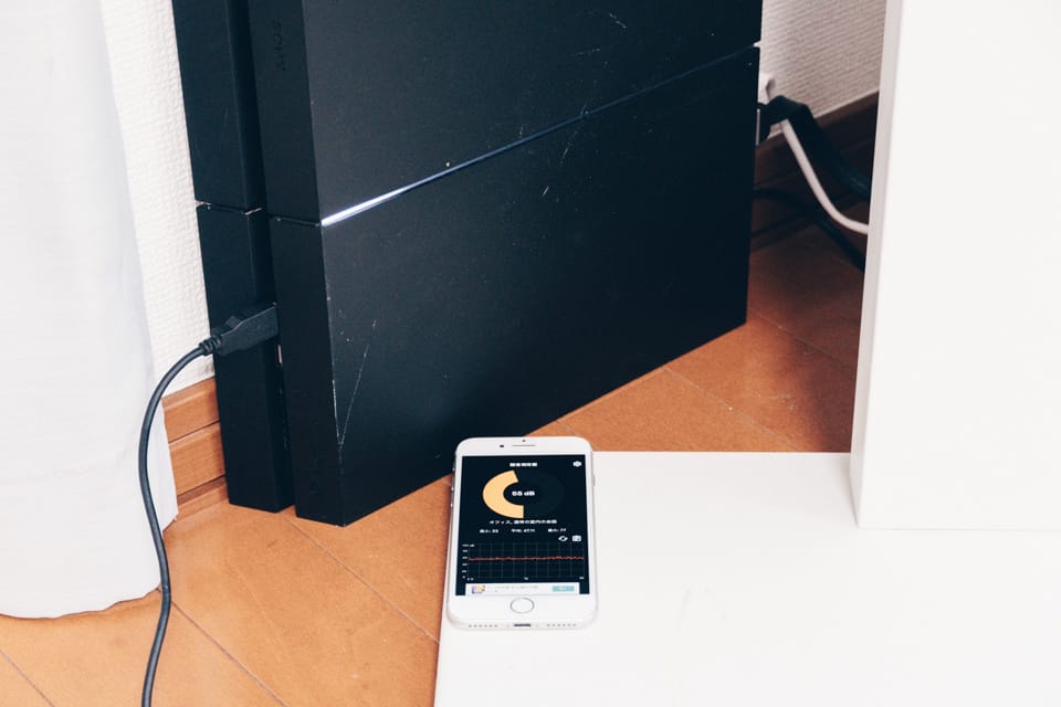 このPS4も爆音だったので、iPhoneで簡易的に騒音レベルを計測してみた所、55dBくらいでした。