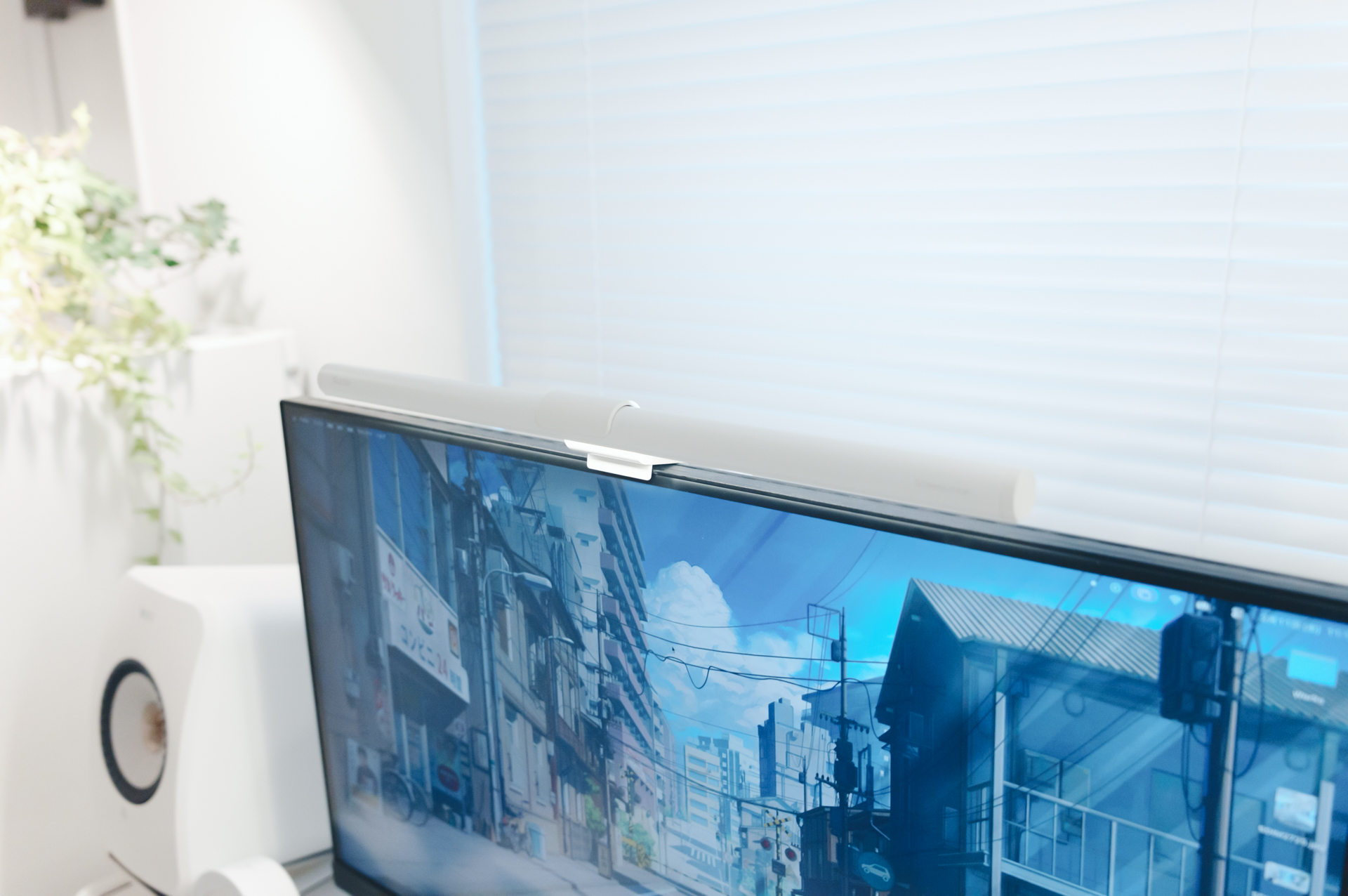 まず、「白いモニターライト」という時点で既に貴重で、本体・クランプ・リモコンまで全て白で統一されているため、白を中心としたデスク環境を構築している方にとって、最高にオススメできるモニターライトです。