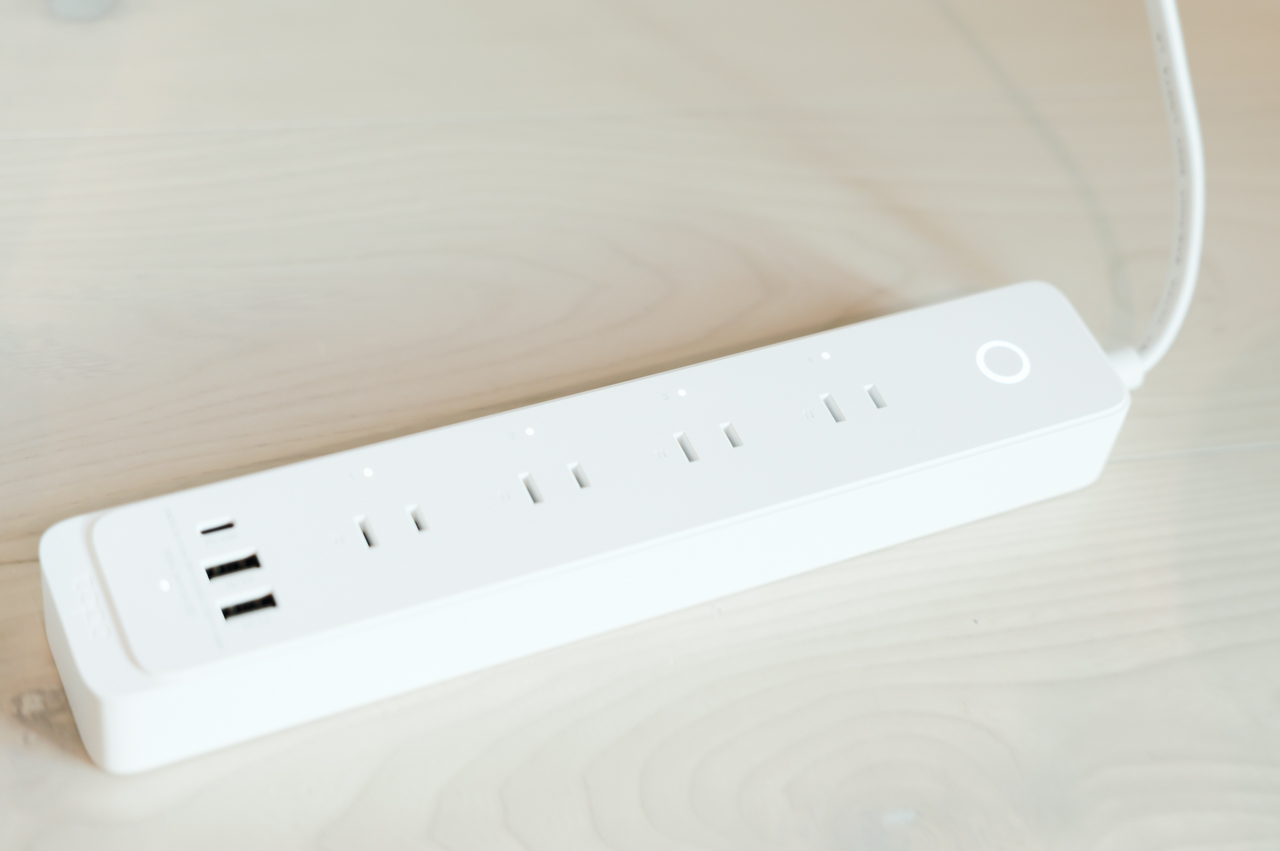 『TP-Link Tapo P300』は4つのコンセント口とUSB-A×2、USB-C×1という、現代のデスク環境にマッチした使いやすい構成のスマートWi-Fi電源タップです。